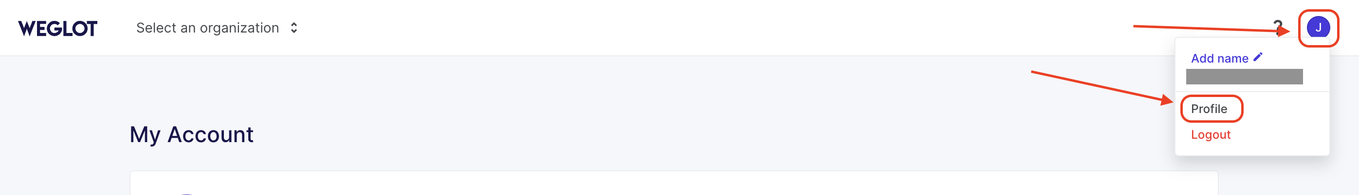 Um die Zwei-Faktor-Authentifizierung zu aktivieren, gehen Sie auf Ihre Weglot-Profilseite, indem Sie oben rechts auf den Avatar klicken und "Profil" auswählen.