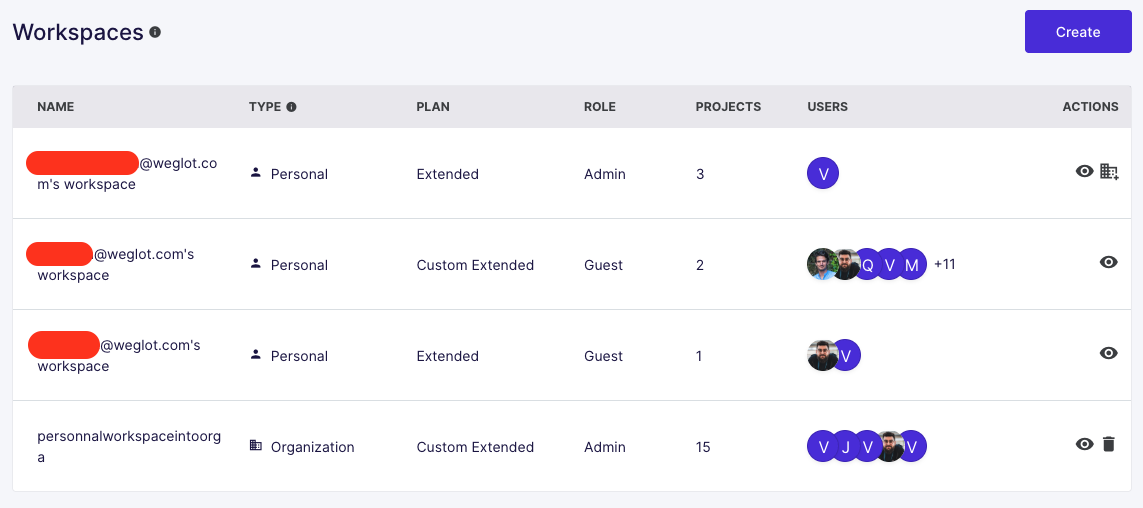 Si no está familiarizado con el sistema de espacios de trabajo de Weglot, le invitamos a consultar el artículo específico que hemos elaborado al respecto. Puede acceder a él desde aquí.