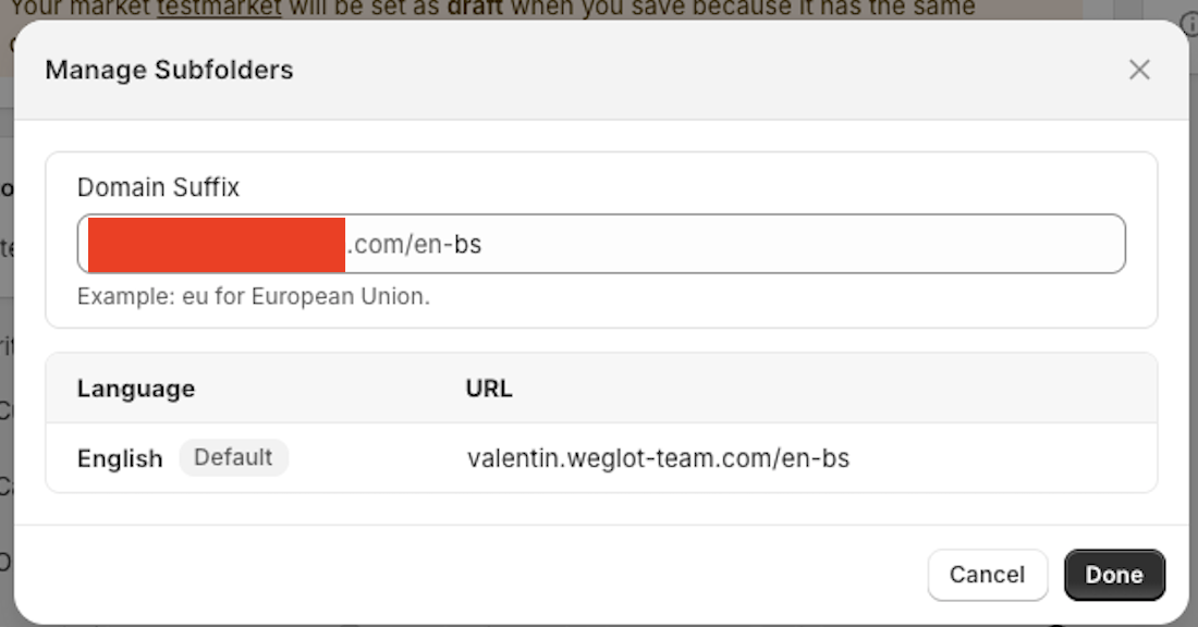 1) Configurer les URLs des sous-répertoires dans Shopify Markets