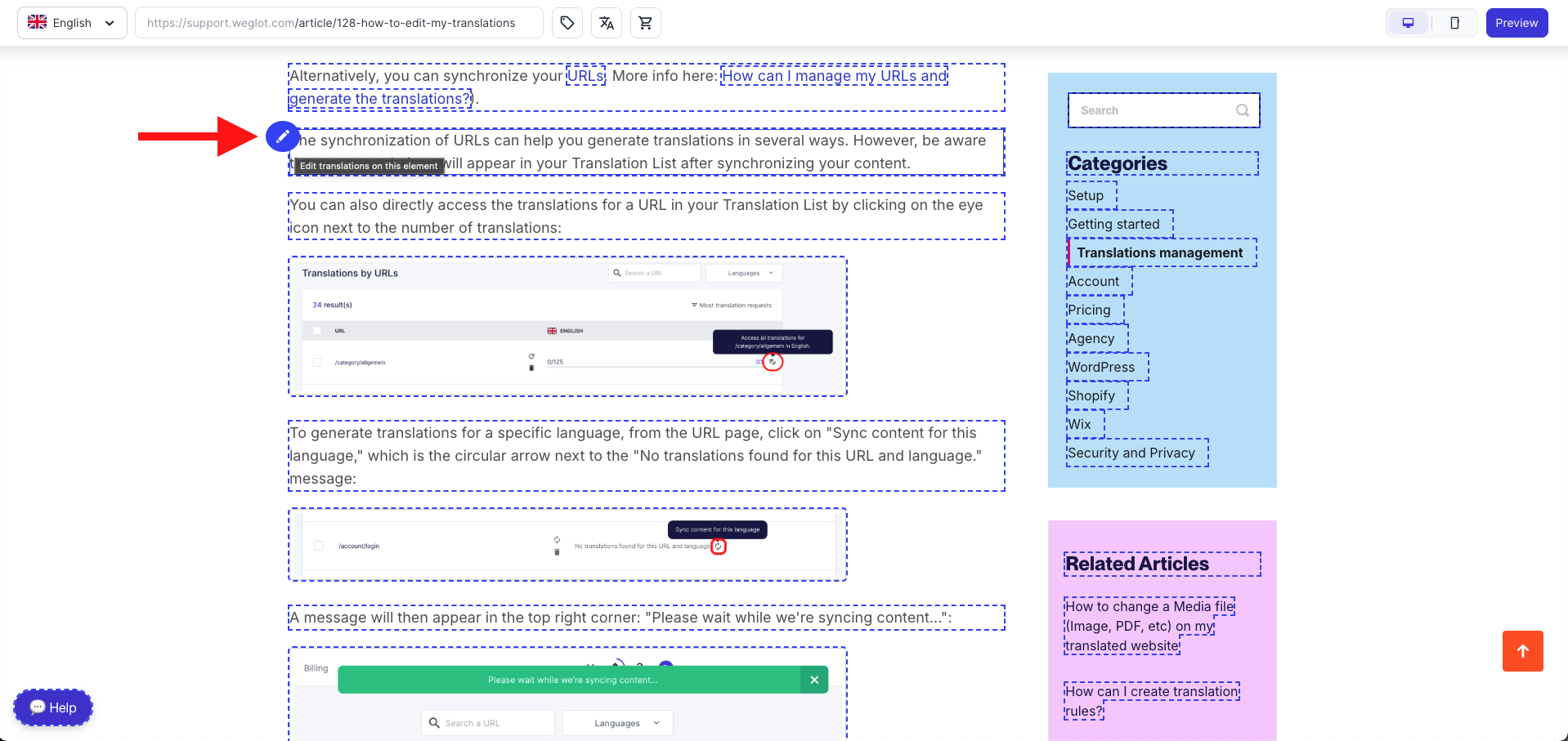 In questo articolo imparerai come utilizzare Visual Editor modificare le tue traduzioni, gestire la qualità delle traduzioni e aggiornare i metadati SEO.