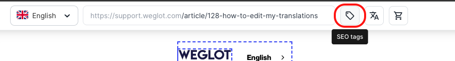 Per farlo, clicca sull'icona dei tag SEO situata vicino all'URL nella parte superiore dello schermo.