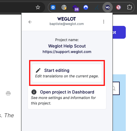 Oltre Visual Editor nella dashboard di Weglot, puoi anche provare l'estensione Weglot Editor per Chrome (beta).