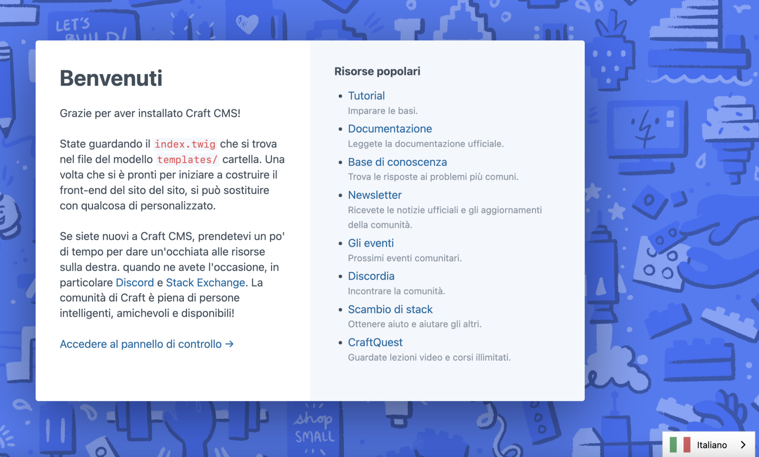 A questo punto, è possibile accedere alla dashboard di CraftCMS.