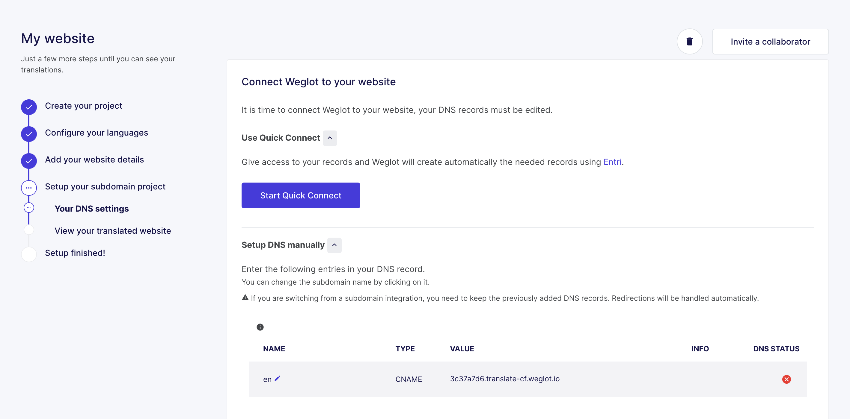 In deze stap verbindt u Weglot met uw website met behulp van uw DNS-records.