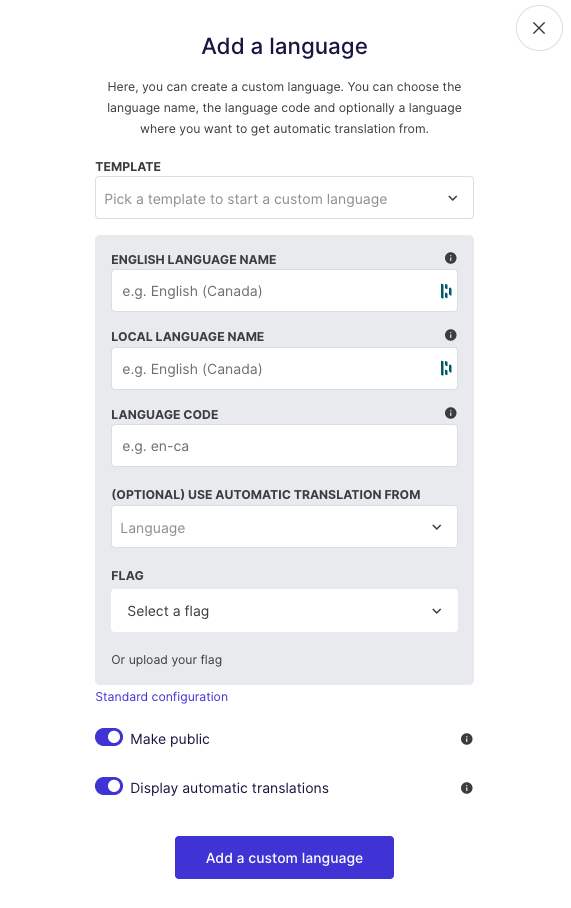 ⚠️ De functie voor aangepaste talen is beschikbaar vanaf het Advanced plan .
