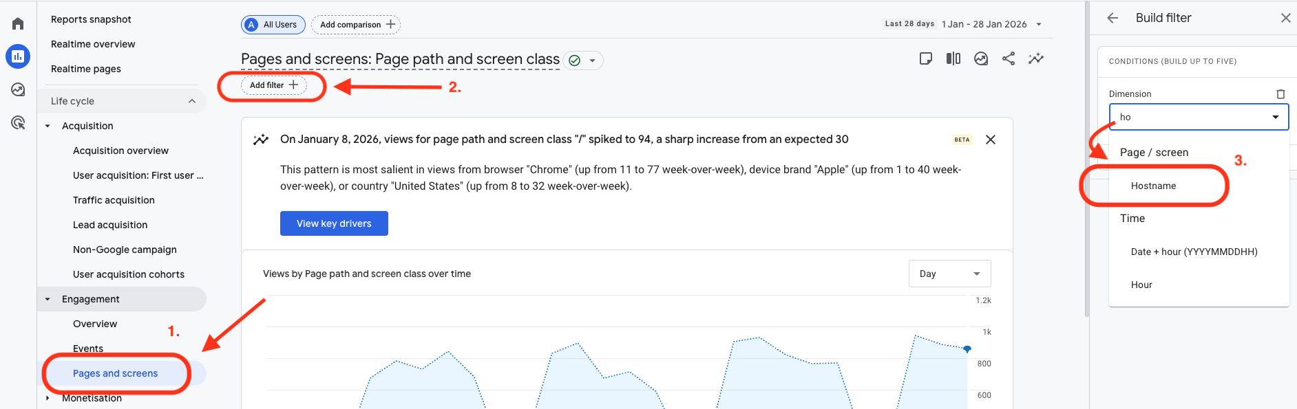 Se estiver a utilizar subdiretórios como mywebsite.com/en/, esses URLs devem ser detetados automaticamente nos seus relatórios do Google Analytics: